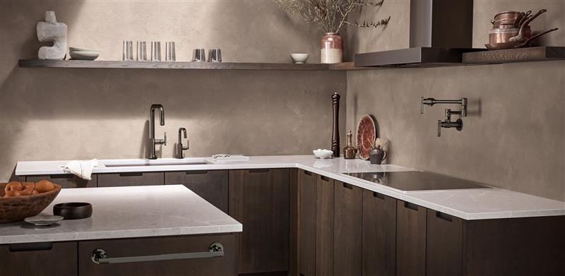 Tip: Consider your kitchen habits while choosing your faucet features. A high-arc sink with a pull-down feature is ideal for a chef cooking with large pots.